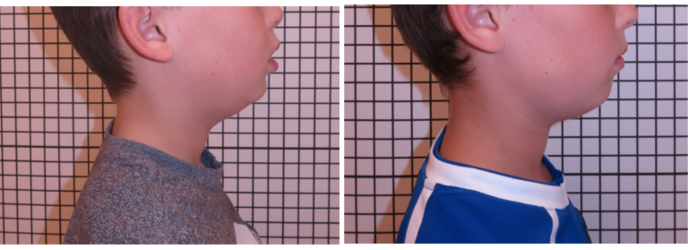 Darüber hinaus verbesserte sich die Haltung des Patienten deutlich. Neben einem kompetenten Lippenschluss konnte auch eine stabile Nasenatmung etabliert werden. Diese funktionellen Verbesserungen wirken sich nicht nur auf die Zahnstellung, sondern auch auf die allgemeine Gesundheit und das weitere Wachstum positiv aus.